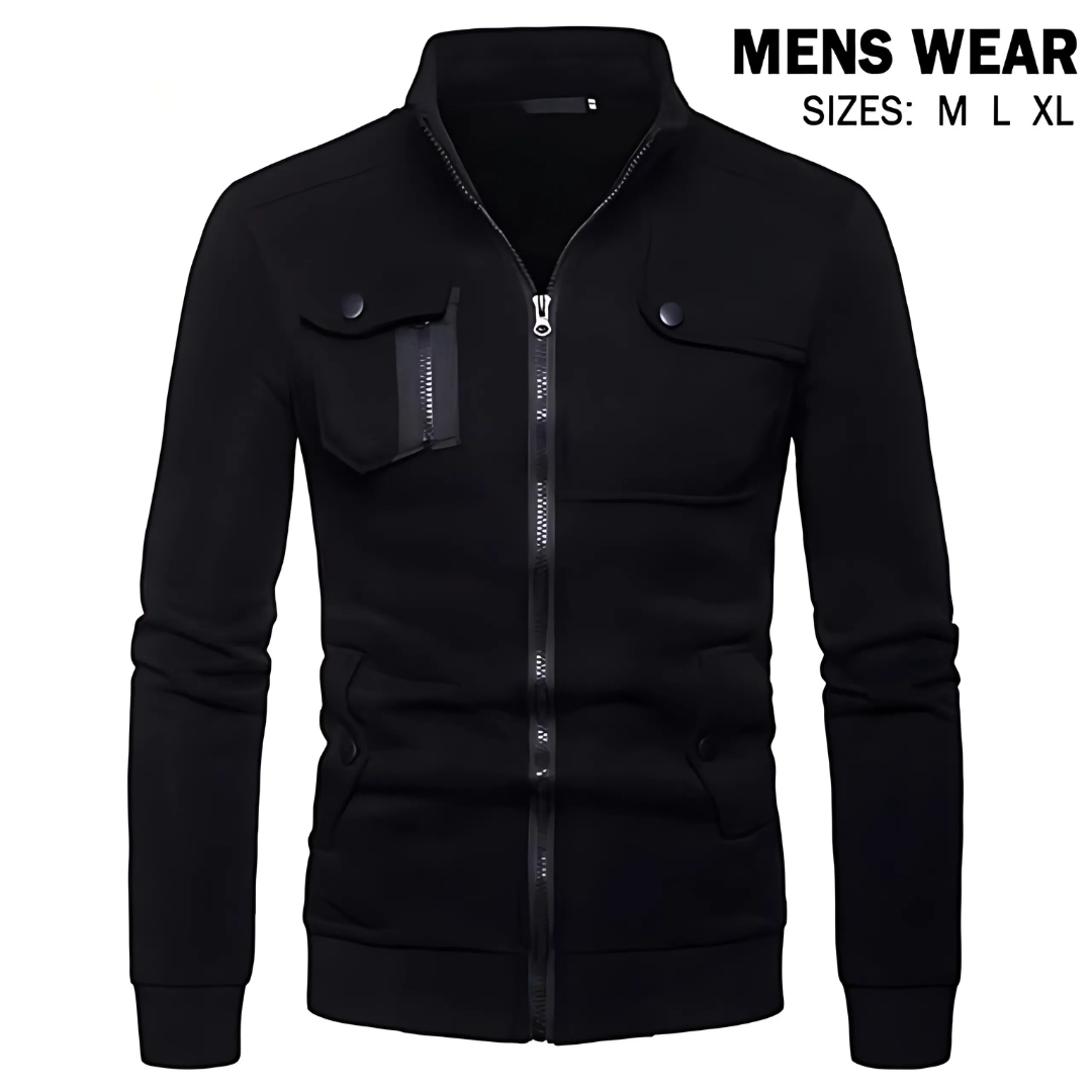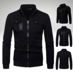- Men’s Wear Stand Collar Slim Fit Cardigan – Cozy Zip with Slant Pocket Jacket