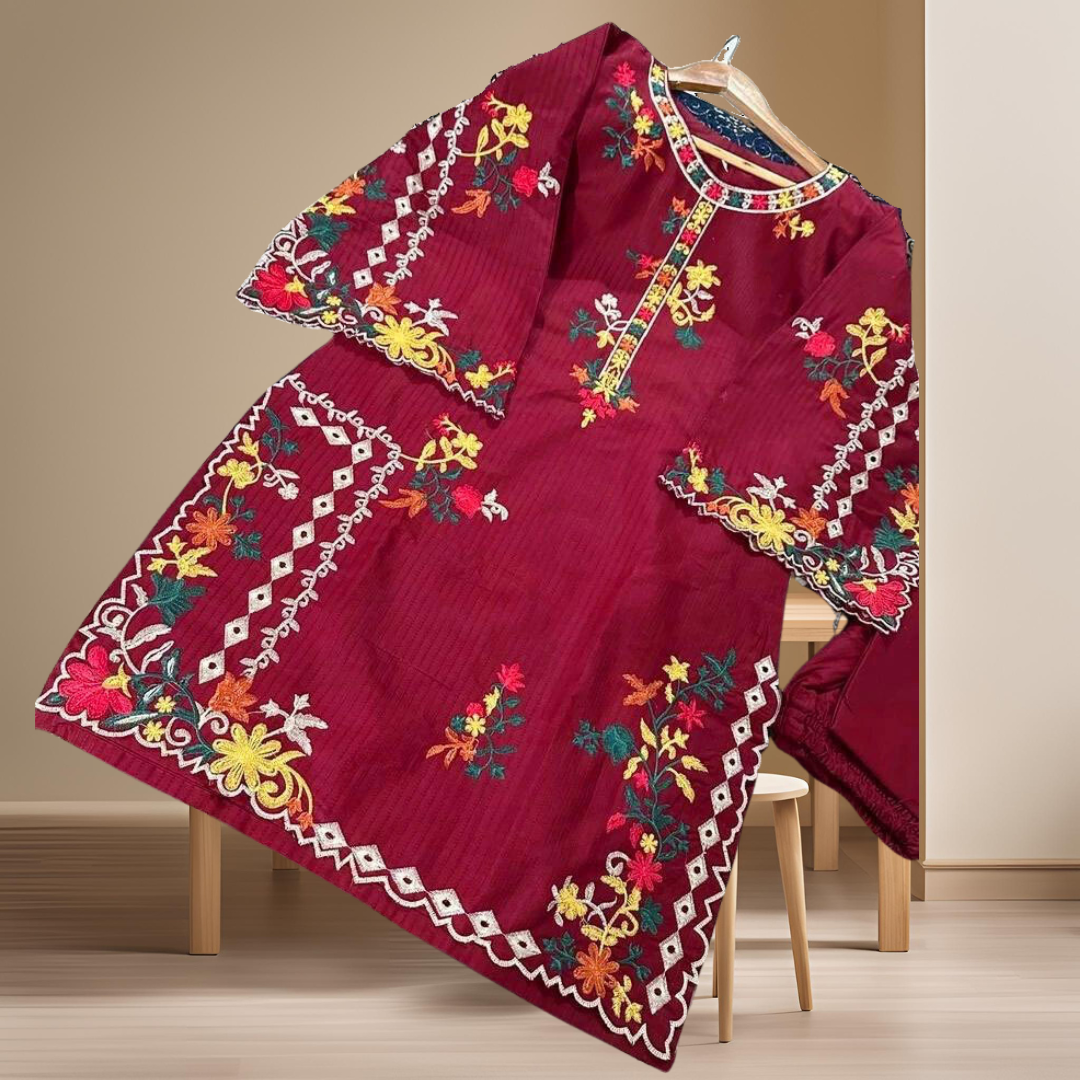 - Multi Embroidery Shirt With Trouser 2 Piece