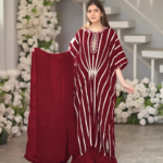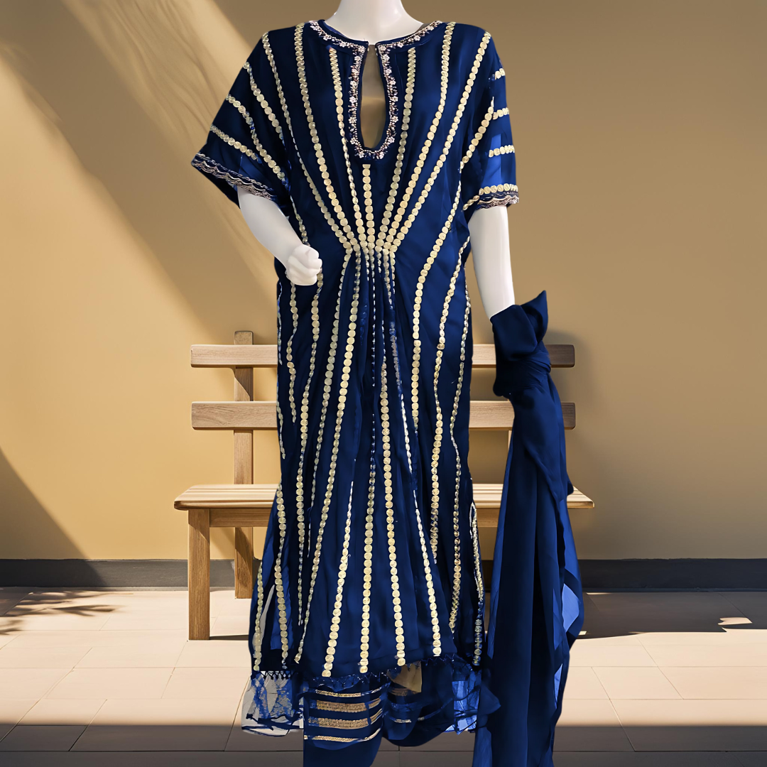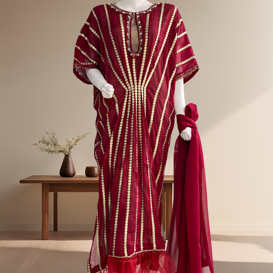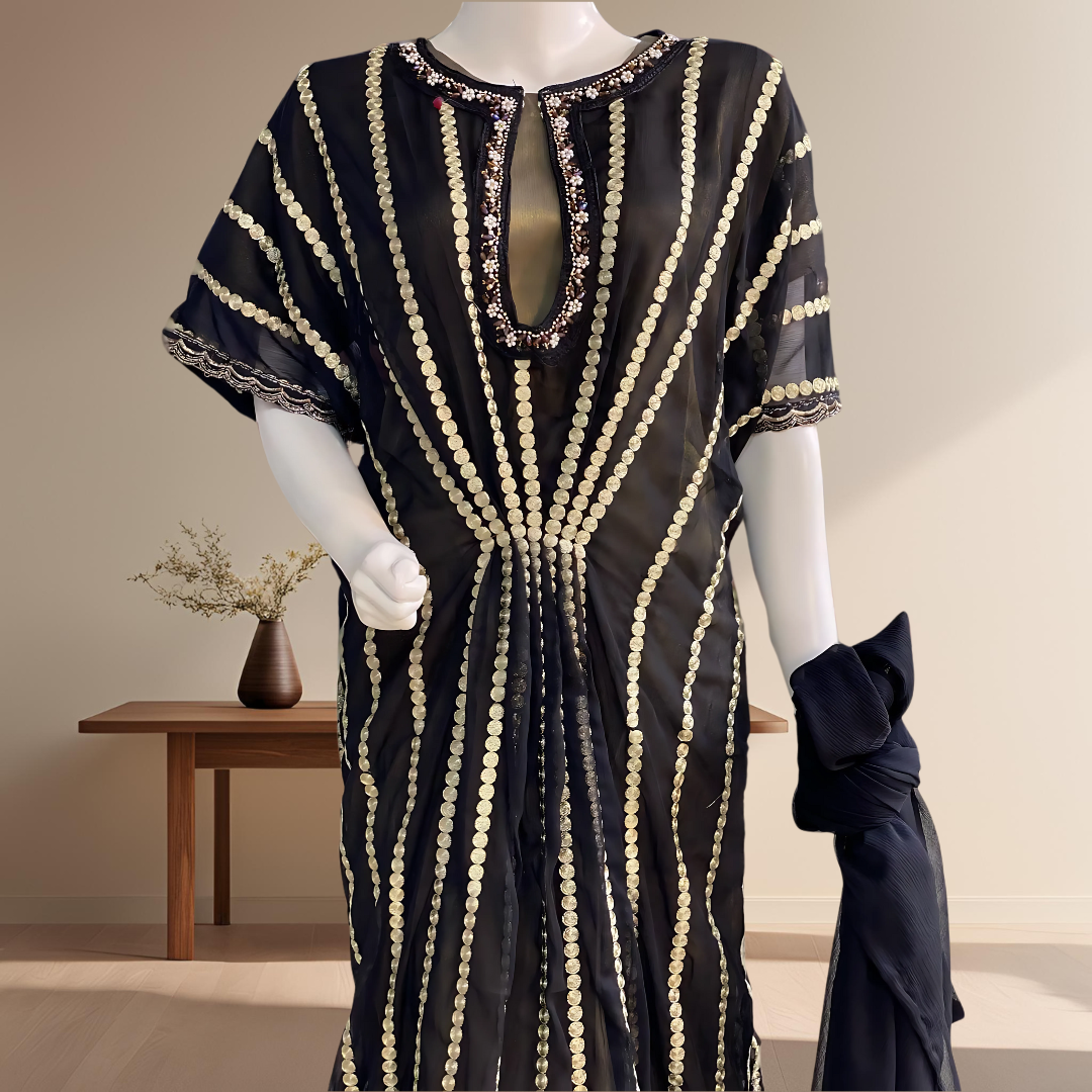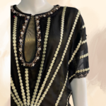 - Entire Ensemble Glistens Waves Embroidery, Accentuated Golden Detailing. Shirt, Soft Elegant Biscotti Color, Crafted Luxurious Maiuri Fabric.